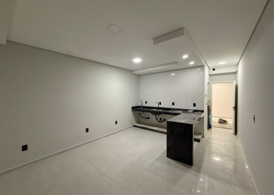 Dormitório/Sala, cozinha, banheiro e 1 vaga de estacionamento.