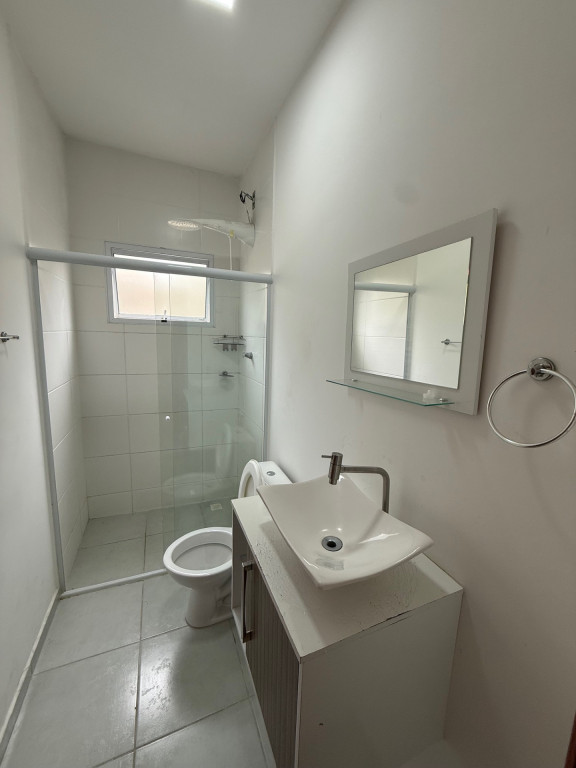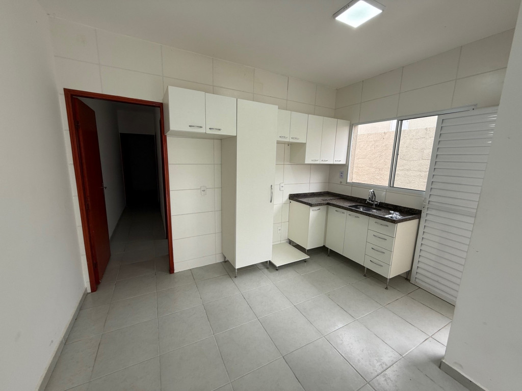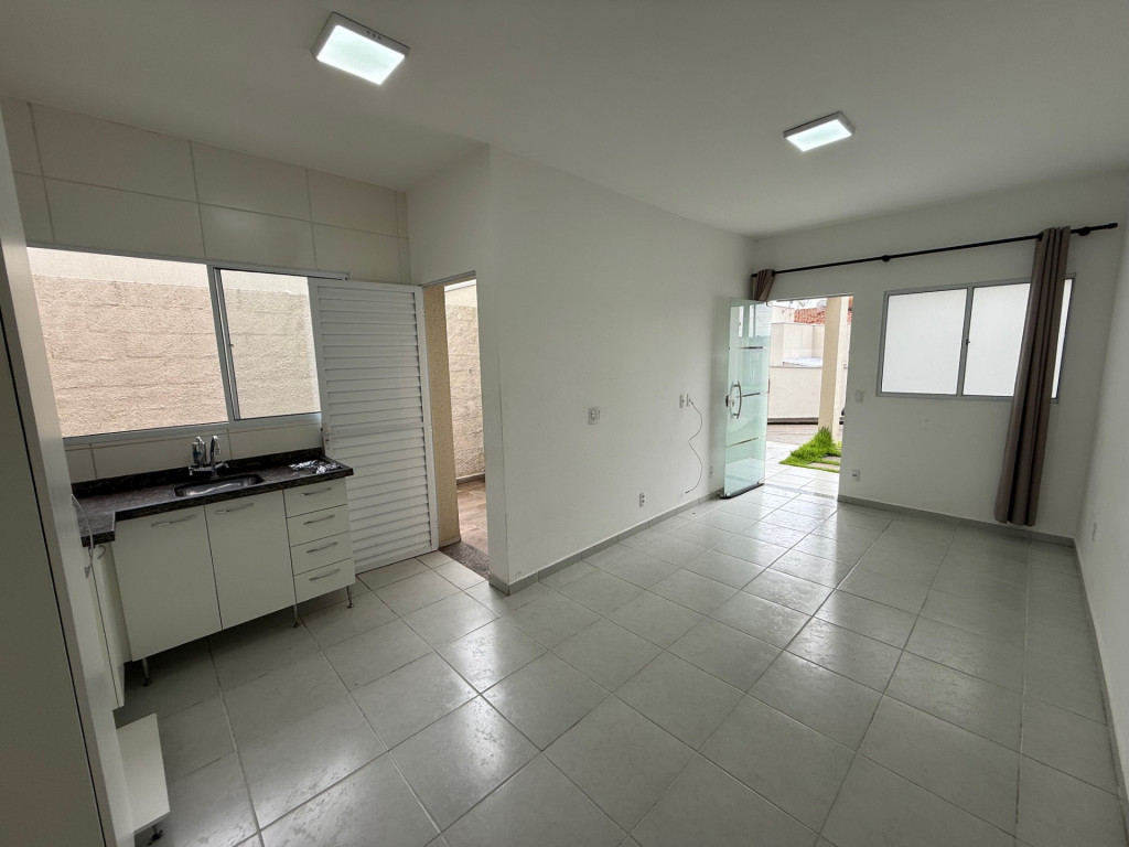 2 Dormitórios, sala, cozinha c/ armário, banheiro c/ box blindex, área de serviço coberta, garagem c/ portão eletrônico e corredor.