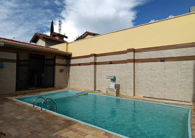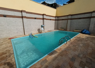 ÁREA DE LAZER: PIA, CHURRASQUEIRA E PISCINA AQUECIDA E BANHEIRO.