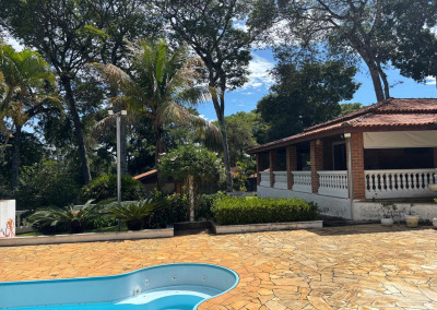 Área de lazer: Piscina, pia, churrasqueira e banheiro.