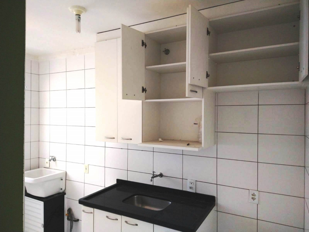 2 Dormitórios ( 1 c/ armário ), sala, cozinha c/ armário, banheiro, área de serviço e 1 vaga de estacionamento com portão eletrônico.